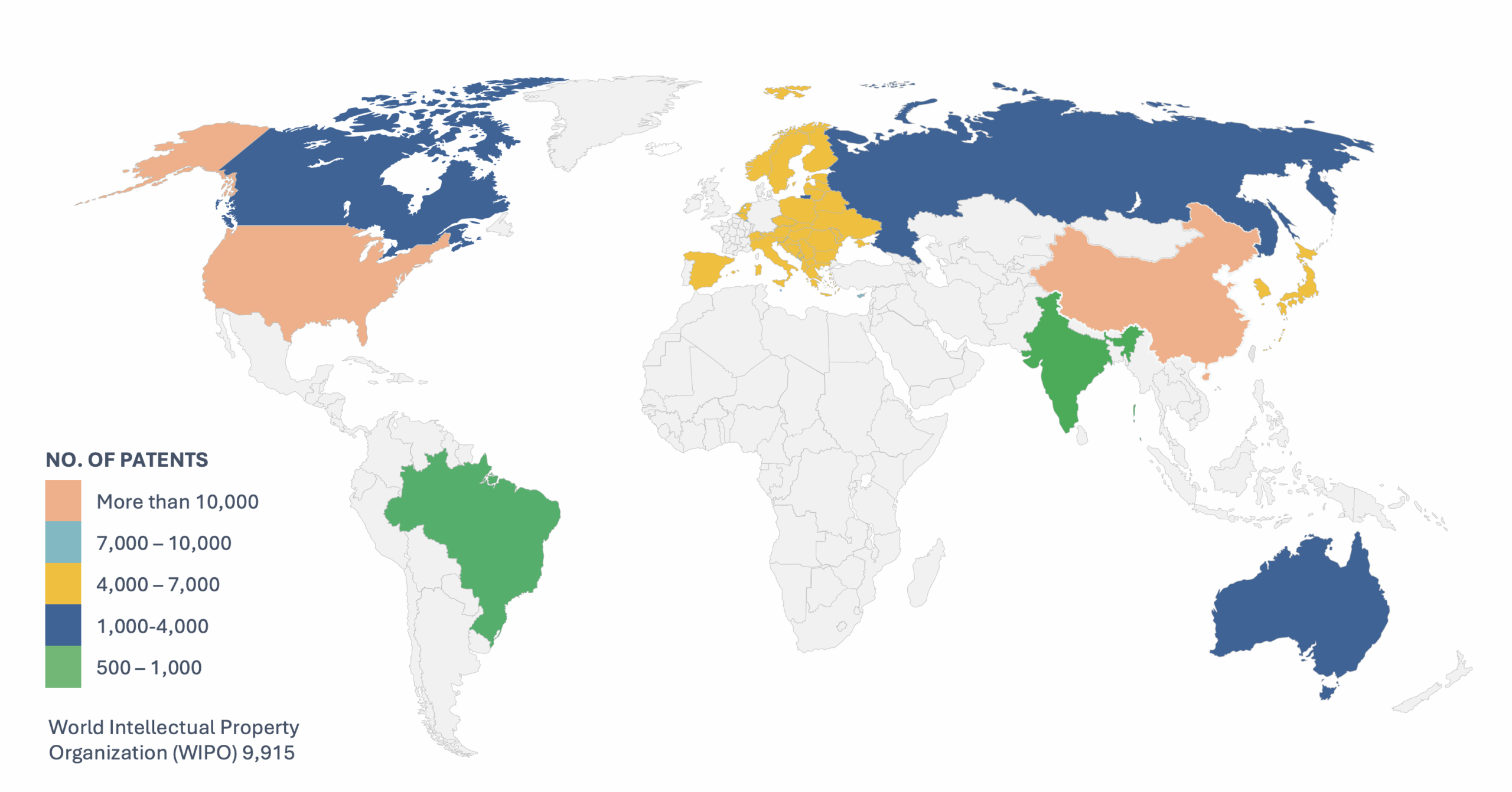Note: The chart is prepared based on the number of patent publications (not patent families) in each of the countries highlighted.